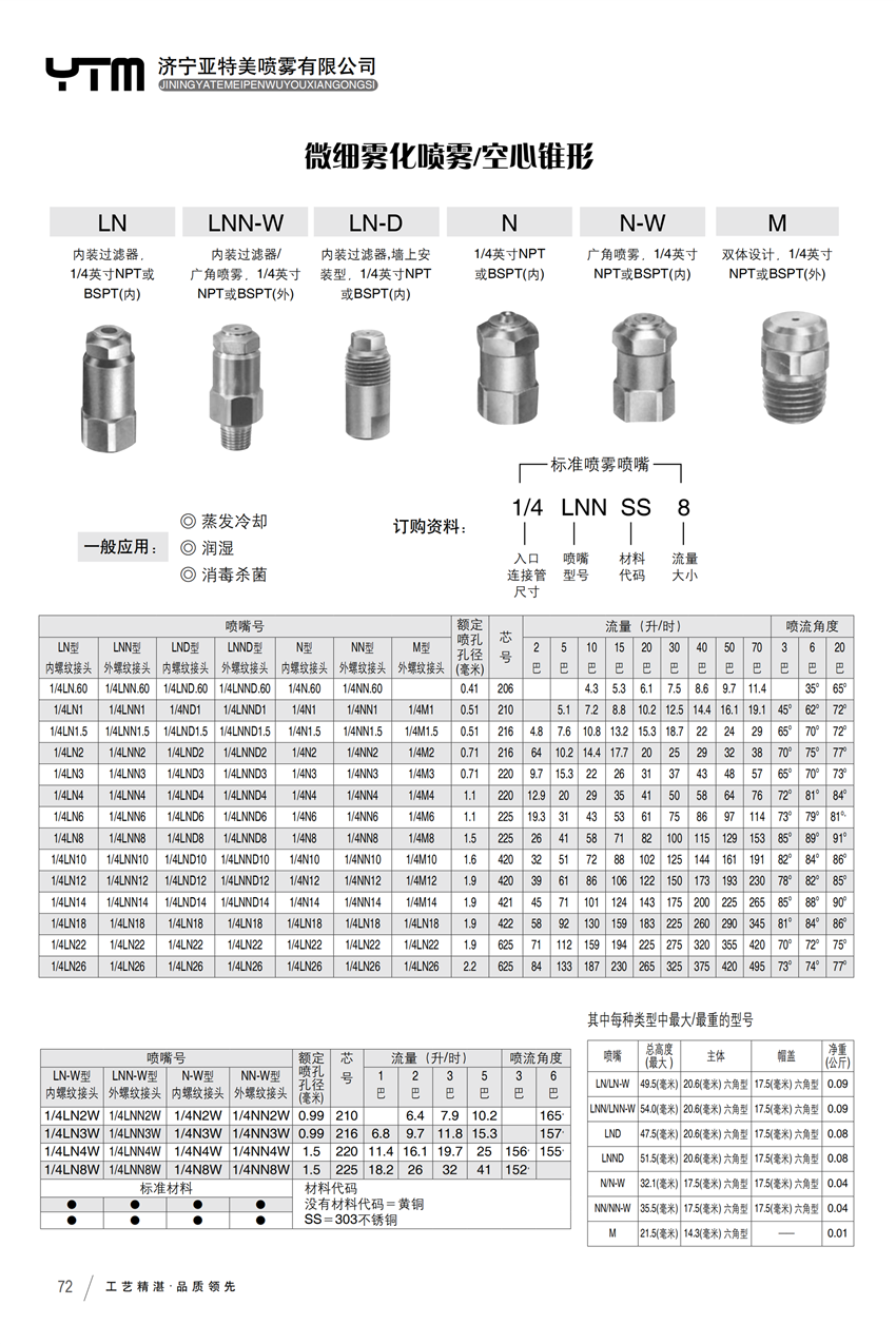 LNN-W内装过滤器/广角喷雾,1/4英寸NPT或BSP外螺纹